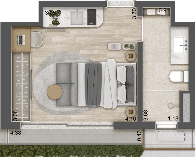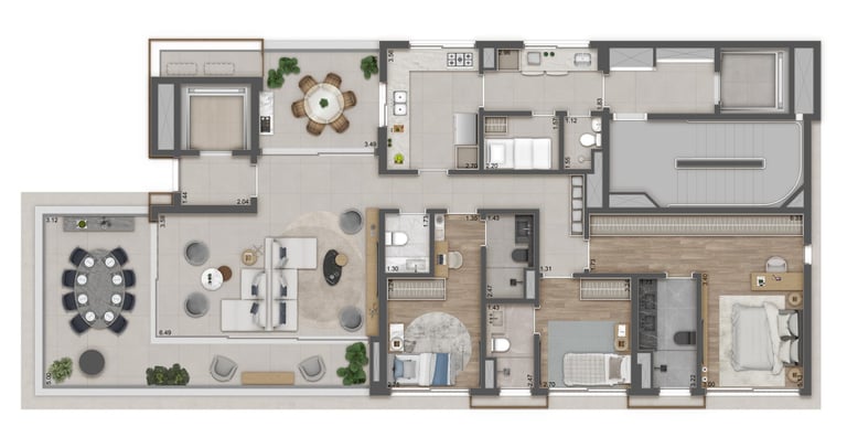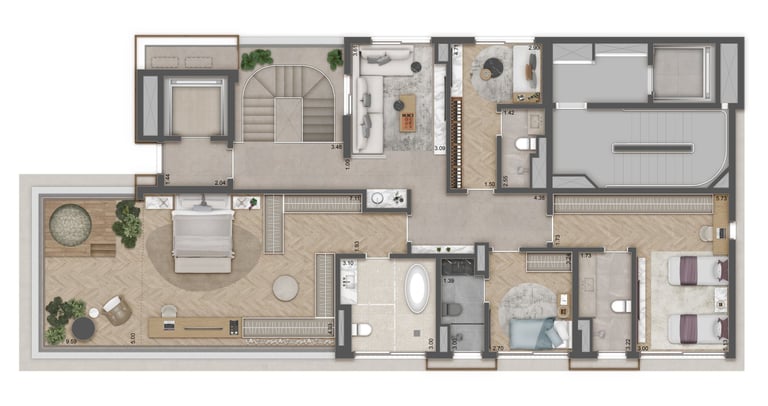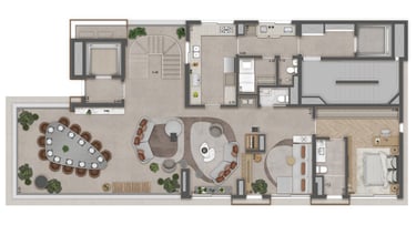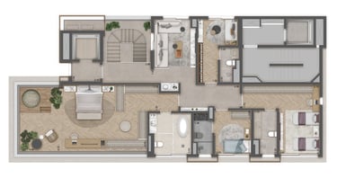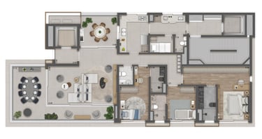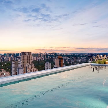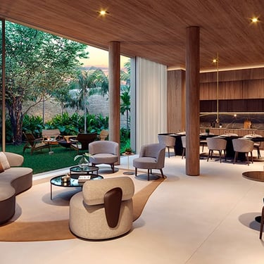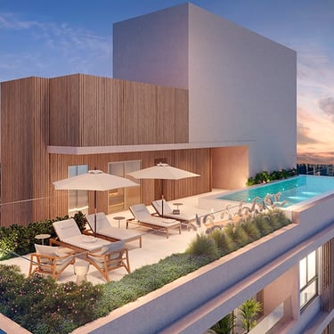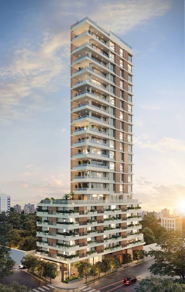 Empreendimento com arquitetura e interiores pensados em cada detalhe, com serviços que vão além das áreas comuns e trazem uma solução de moradia moderna e exclusiva, com conceito e serviços inspirados nos melhores hotéis do mundo. As plantas, convidativas para a vida, permitem integração e ventilação cruzada, valorizando a amplitude e a vista para além do apartamento.